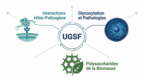Les activités de recherche de l’UGSF, explorent la complexité des structures glucidiques à toutes les échelles du vivant, de la molécule à l’organisme, pour répondre à des enjeux de santé globale (One Health), de développements biotechnologiques innovants et de biodiversité dans un monde soumis à des transitions majeures.